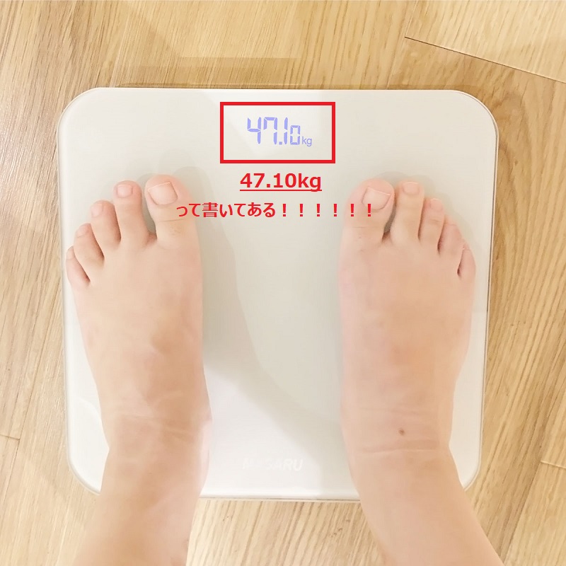 だから48.8kgでも決して太ってるわけじゃないんだけど、サトらび的に体のラインが一番きれいに見える理想体重が45kg台なの。(これは筋肉量とか骨量によっても変わってくるよ)